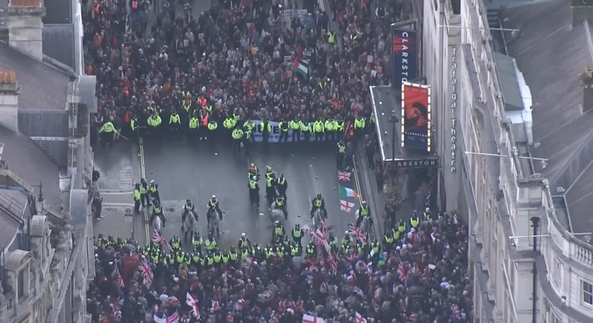 Původně poměrně poklidná demonstrace se zvrtla v rozsáhlou potyčku s policií. Metropolitní policie uvedla, že několik policistů bylo udeřeno pěstmi, kopáno a zasaženo lahvemi. Na podporu více než 1000 policistů ve službě byly nasazeny posily vybavené přilbami a štíty.